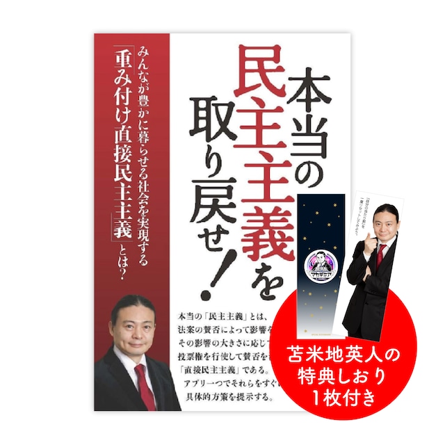 【YouTubeチャンネル「銀河系アカデミア」限定特典対象】 今ならご購入者全員に「公式オリジナルしおり」をプレゼント! ⸻ すべての国民が豊かに暮らせる社会を実現する「重み付け直接民主主義」とは? ホッブズ、ルソーらの社会契約説と近代民主主義の関係、それを崩壊させようする自民党政治の実態、さらにスマホアプリひとつで実現できる「本当の民主主義」の実現方法まで… 民主主義の歴史と未来が「わずか3時間、100ページ」で学べるブックレット! ※ ※ ※ 本来の社会契約説から言うと、いまの日本の政治は民主主義ではなくなってしまっています。国会議員は自主的に投票することができなくなり、単なる党のための投票マシンとなってしまいました。(中略)こうしたおかしな政治状況を改善し、国民の手に主権を取り戻す最善の方法がインターネットを利用した「直接民主主義」です。ただ、これから私が提案したいのは、単なる一人1票の直接民主主義ではありません。その法案への直接的な関わり、影響の度合いによって票に差を設ける「重み付け直接民主主義」です。(本文より抜粋) 【目次】 第一章 社会契約説と近代民主主義 第二章 真の国民主権を実現する「重み付け直接民主主義」 第三章 スイスの事例に学ぶ「直接民主主義」 [書籍情報] 出版社:サイゾー 発売日:2022/6/25 言語:日本語 単行本:118ページ 価格:770円(税込) 【限定特典】 YouTube「銀河系アカデミア」オリジナルしおりをプレゼント! 現在、サイゾーブックスで苫米地英人博士の対象書籍をご購入いただいた方全員に、YouTubeチャンネル「苫米地英人の銀河系アカデミア」公式のオリジナルしおりを1枚(全4種/ランダム)同梱してお届けします。ここでしか手に入らない限定アイテムです。