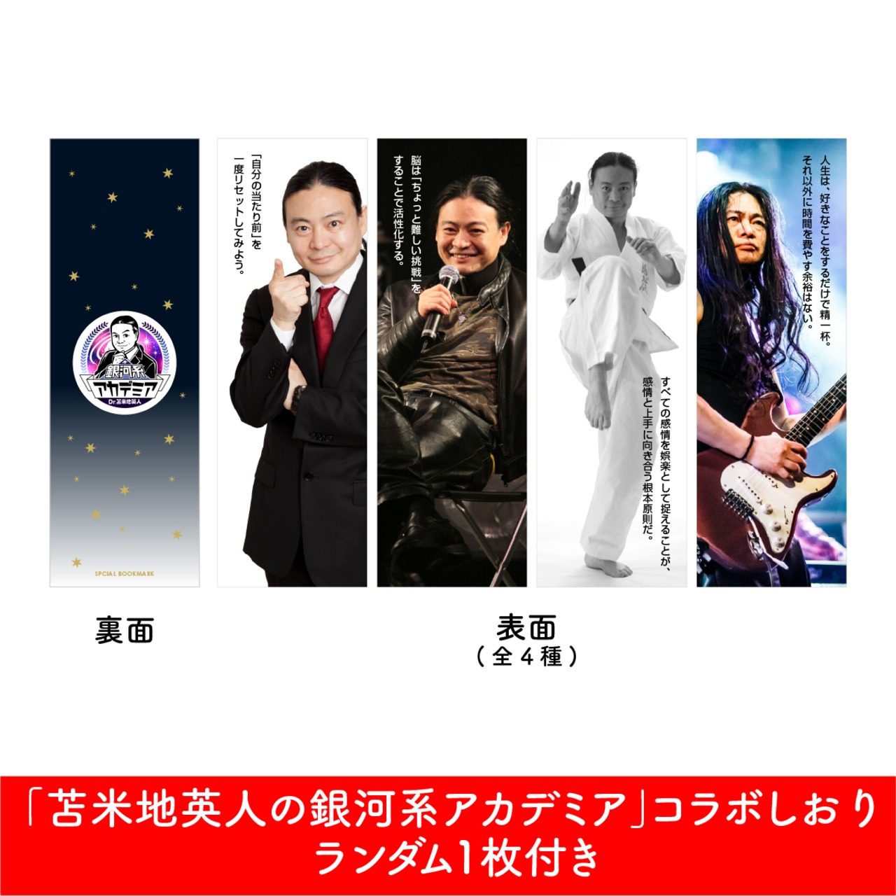 YouTube「銀河系アカデミア」オリジナルしおりをプレゼント! 現在、サイゾーブックスで苫米地英人博士の対象書籍をご購入いただいた方全員に、YouTubeチャンネル「苫米地英人の銀河系アカデミア」公式のオリジナルしおりを1枚(全4種/ランダム)同梱してお届けします。ここでしか手に入らない限定アイテムです。